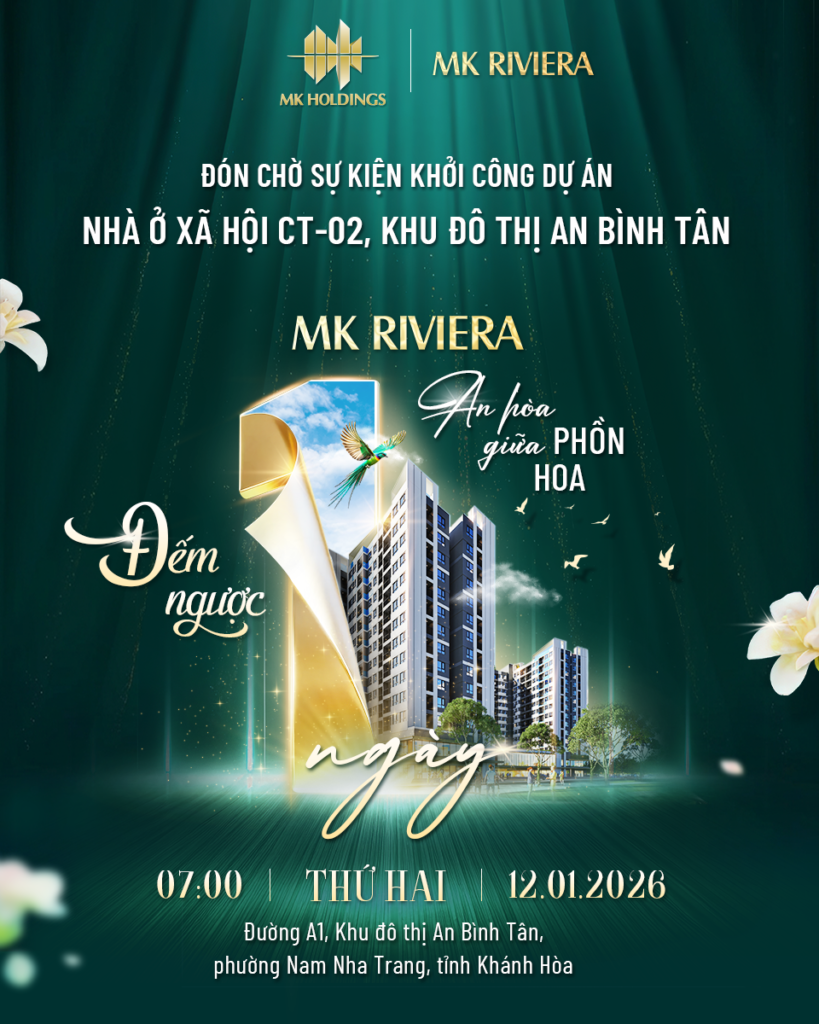 MK Riviera - Nhà ở xã hội kiểu mẫu, biểu tượng mới của nhịp sống an hòa giữa lòng đô thị. MK Riviera mang hơi thở hiện đại, nơi ngày mới bắt đầu bằng sự bình yên và kết thúc trong phồn hoa rực rỡ.